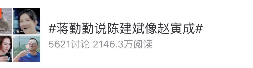 这已经是他们参见《爱情三重奏》以来第二次上榜了。不过,这次不是因为陈建斌的直男癌,而是因为蒋勤勤的“白内障”。