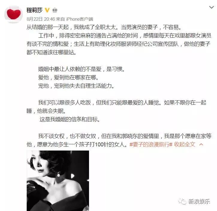 一桩桩、一件件,在旁人看来都是直男癌的表现,但是程莉莎却很霸气地直接发微博力挺老公:他喜欢的就是我喜欢的,我愿意为他付出一切,愿意为他多生一个孩子打100针。