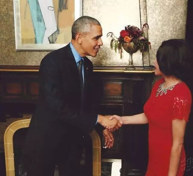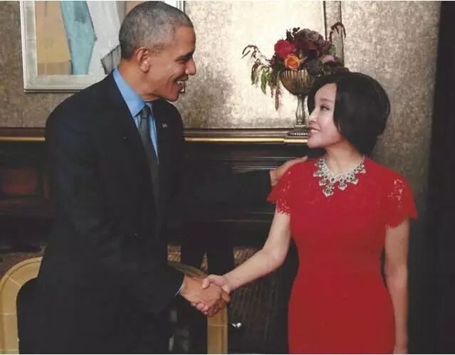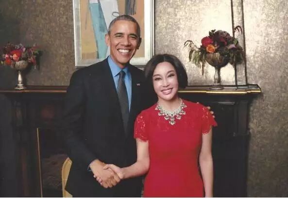 刘晓庆与奥巴马合影 身穿大红裙优雅迷人