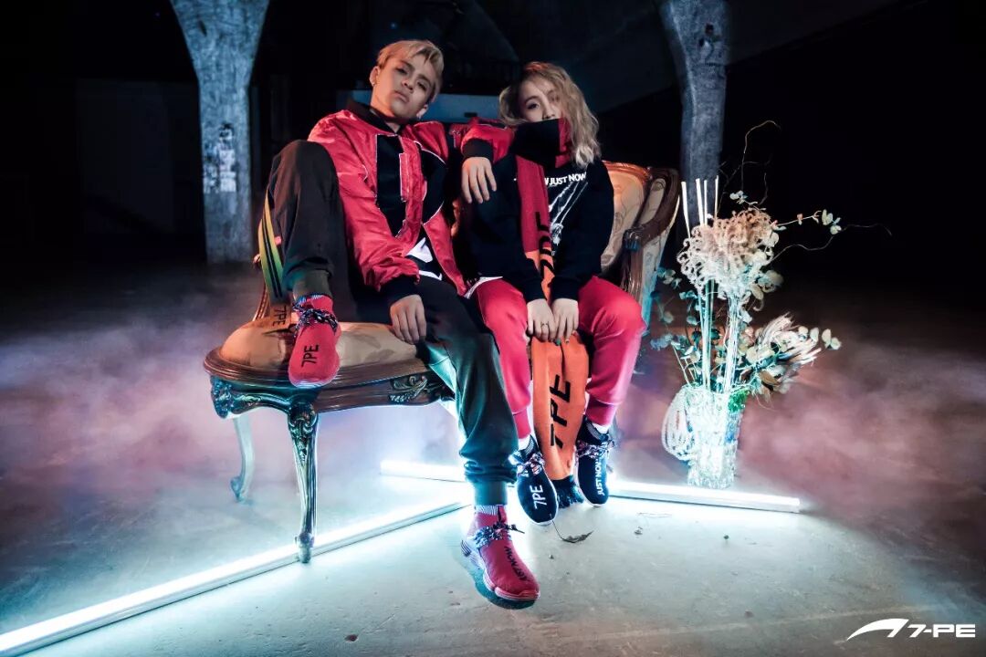 该系列由中国十大新锐设计师丁宁为七波辉原创设计打造,服装风格很像70年代纽约hiphop文化,再结合街舞特有的图案撞色和夸张logo,大胆张扬。