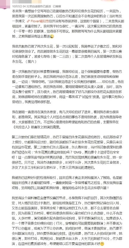 大致意思是迪丽热巴非常有礼貌,耍大牌纯属子虚乌有。