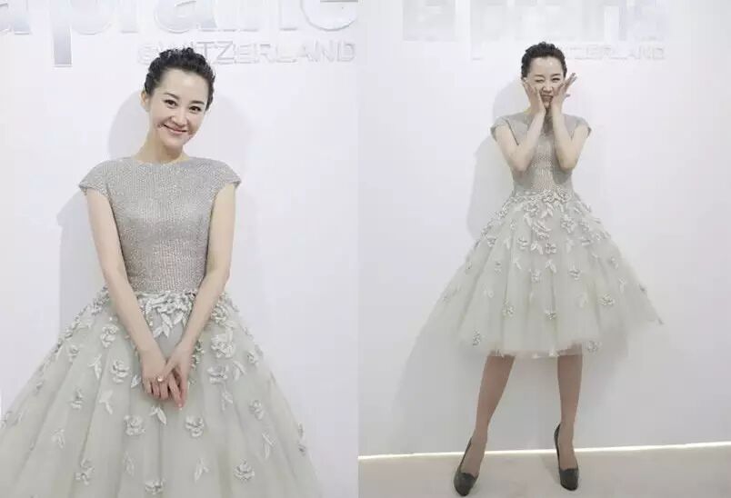许晴身着一袭欧根纱立体绣花透视薄纱的伞裙,蓬蓬裙摆减龄不少,公主味十足,尽显小女生的甜美风范。