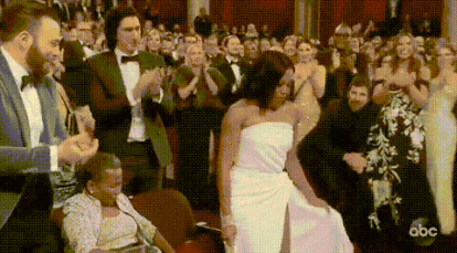 而在颁发最佳女配时,Regina King上台领奖差点被裙子绊倒,美队贴心搀扶她上台,绅士爆棚,暖化人心!