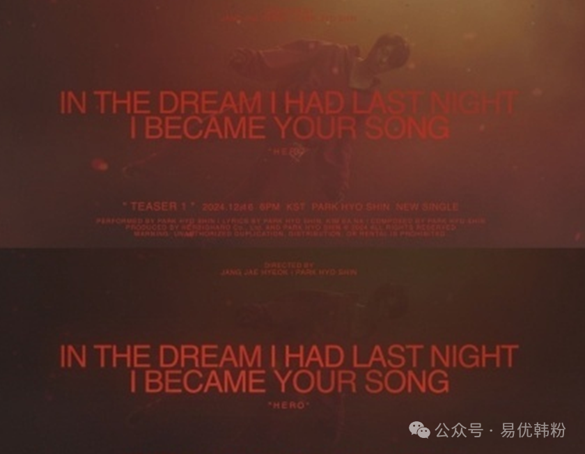 据悉,朴孝信的新单曲《HERO》及MV将于近期正式发布,让我们共同期待这位乐坛巨匠带来的精彩表现吧!