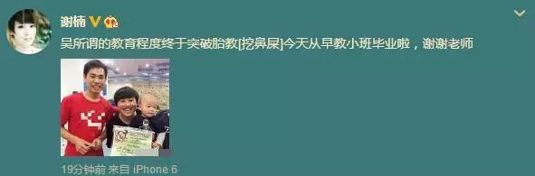 10月14日凌晨,主持人谢楠晒出儿子吴所谓