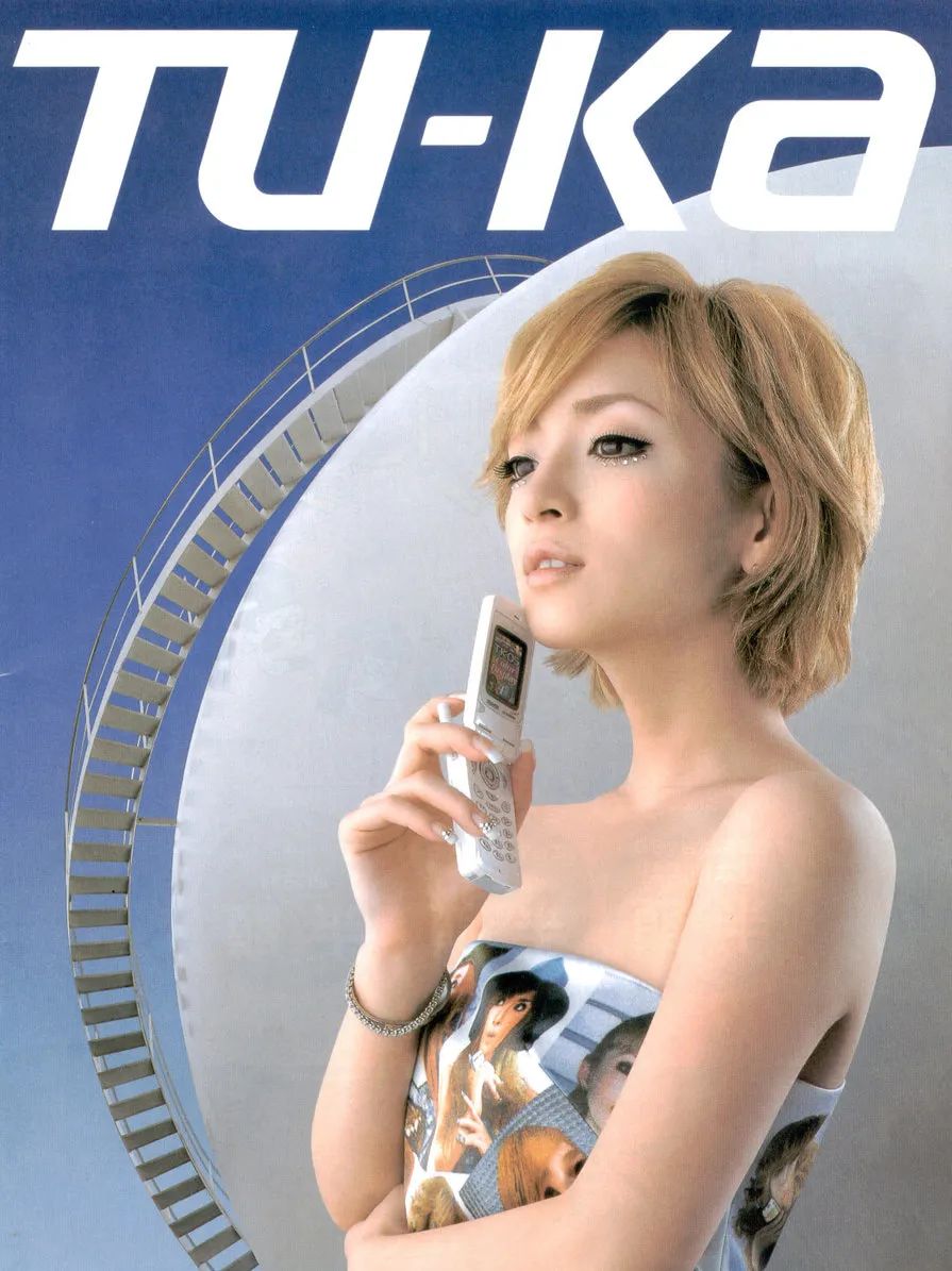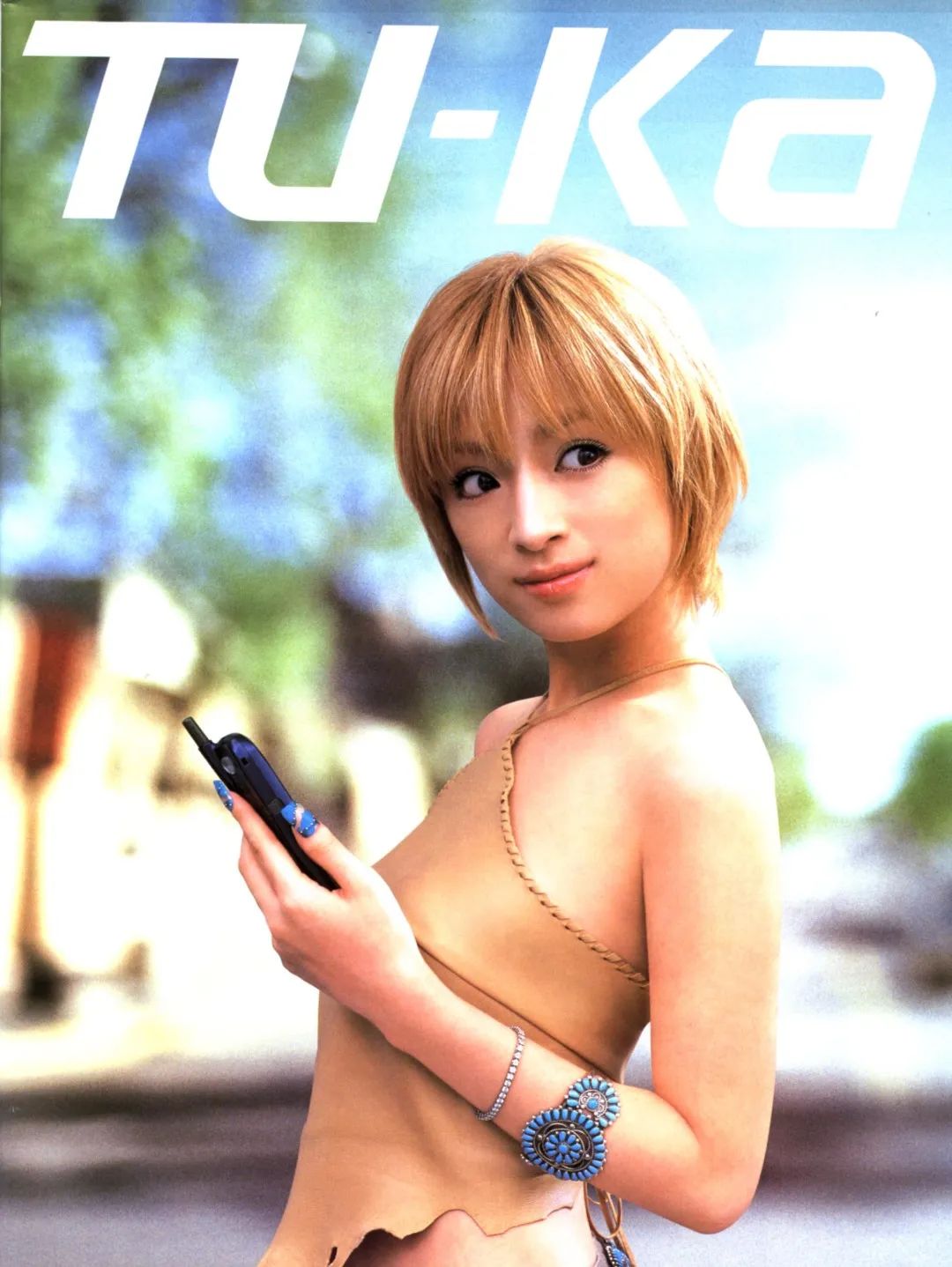 由她连续三年代言的时尚手机 TU-KA 的宣传画册,更是如同滨崎步的个人风格志一般,无论是古灵精怪的双马尾造型、优雅的复古名伶,还是在干练短发之下由紧身造型所带来的俏皮性感,亦或是由她本人设计的与专辑《Duty》中的造型同样全身覆盖豹纹的手机外观,滨崎步都用与服装或配饰相搭配的指甲毫不含糊的将时髦武装到指尖,几乎每一张都是当下 Y2K 的标准模仿范本。