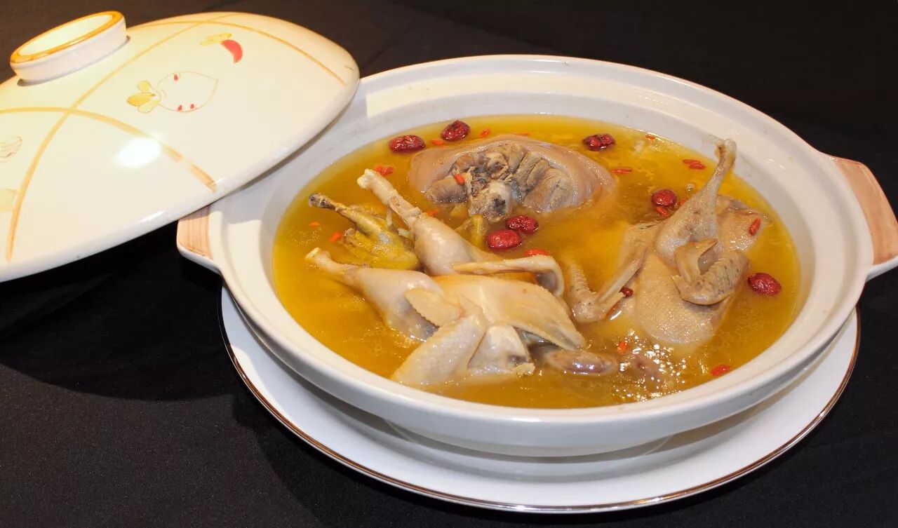 冬瓜球、婆参、鱼翅、鸡丝、枸杞、鹌鹑蛋