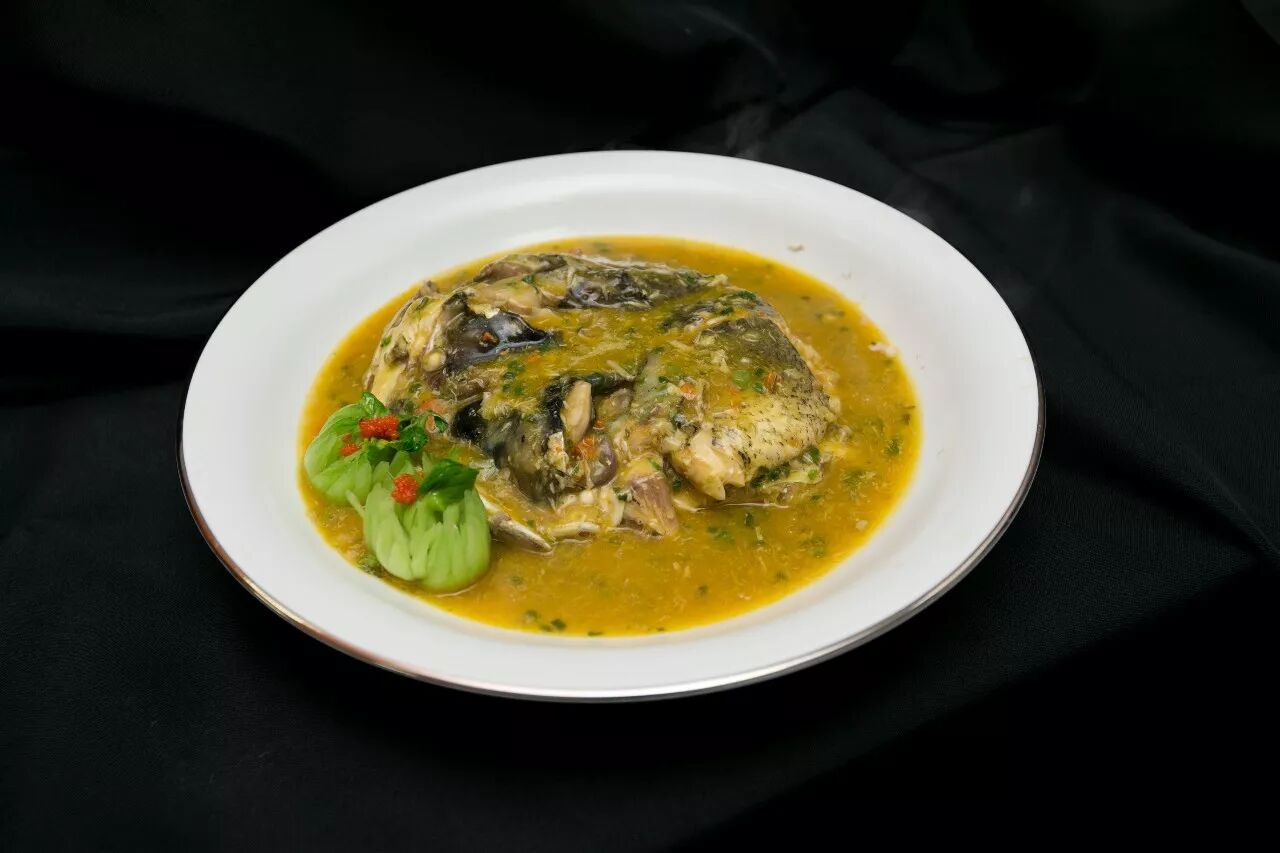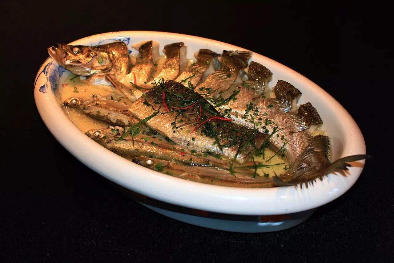 贡鱼干蒸手工蛋饺、咸鸡蒸菜干