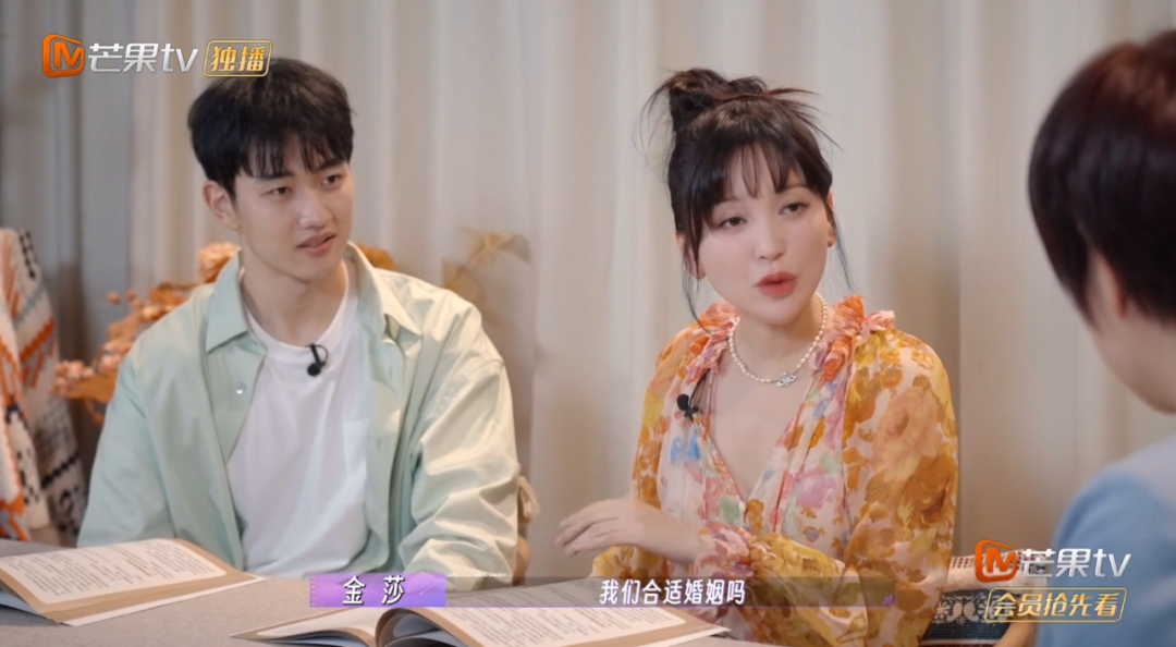 在节目中,他们一起做了关于对婚姻准备的心理测试,金莎向专家问了一句心中的疑问:“我们合适婚姻吗”?