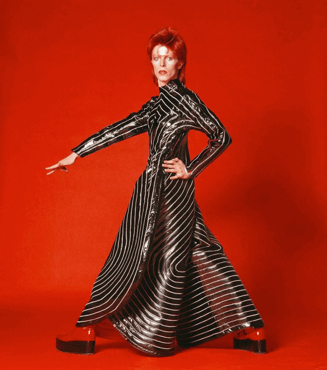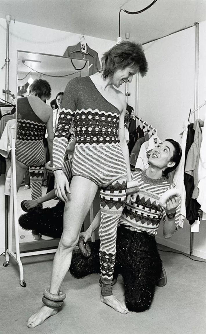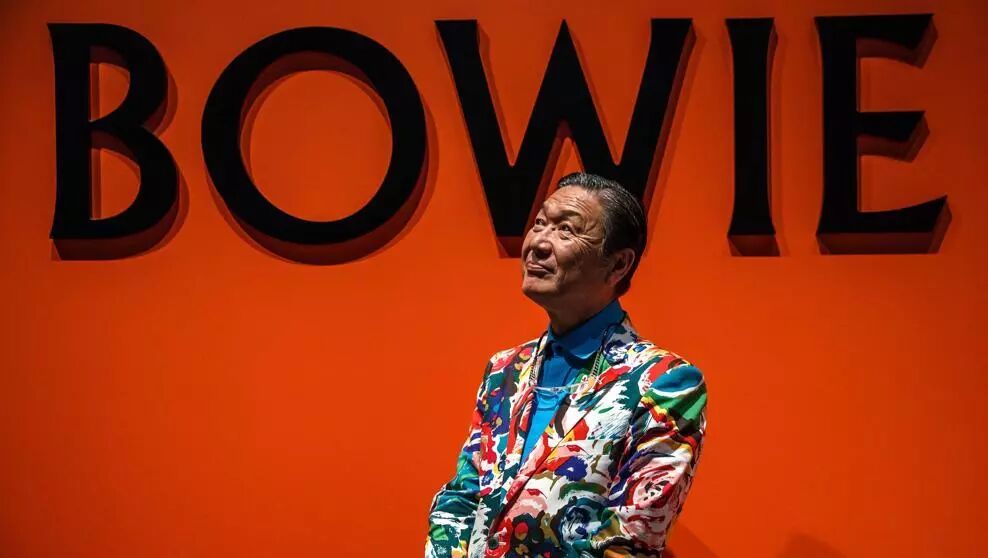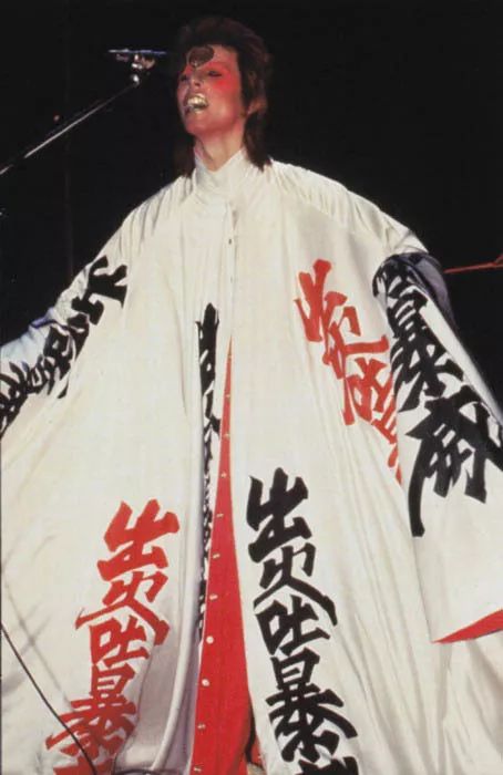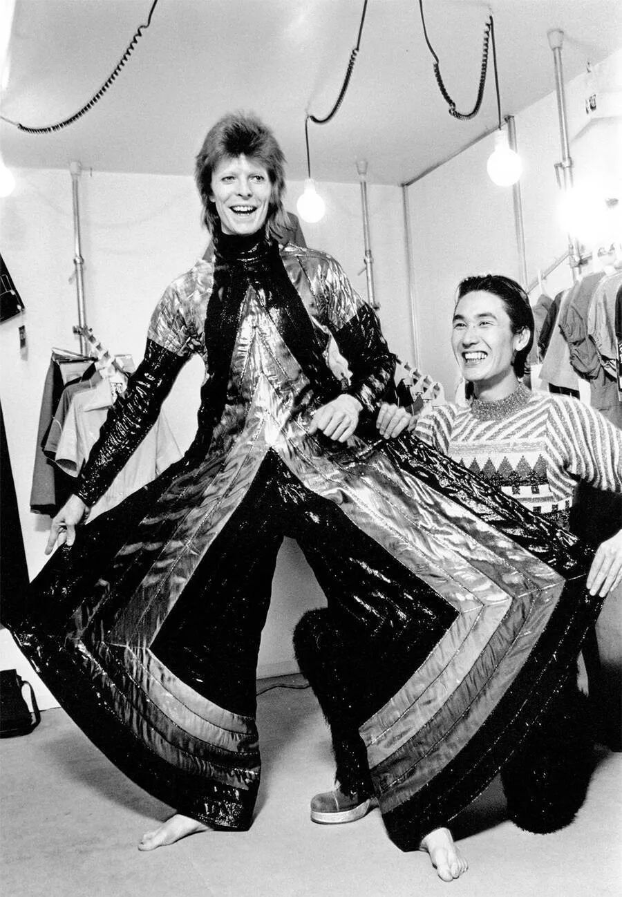 作为首个在巴黎开个展的日本设计师,他在1973年开始了为David Bowie的巡演设计舞台服的旅程。据摄影师 Hiroshi Yoda 所说,David Bowie看到杂志上的一款条纹设计后联系到了宽斋,希望宽斋可以为他的「Ziggy Stardust」量身定做服装。
