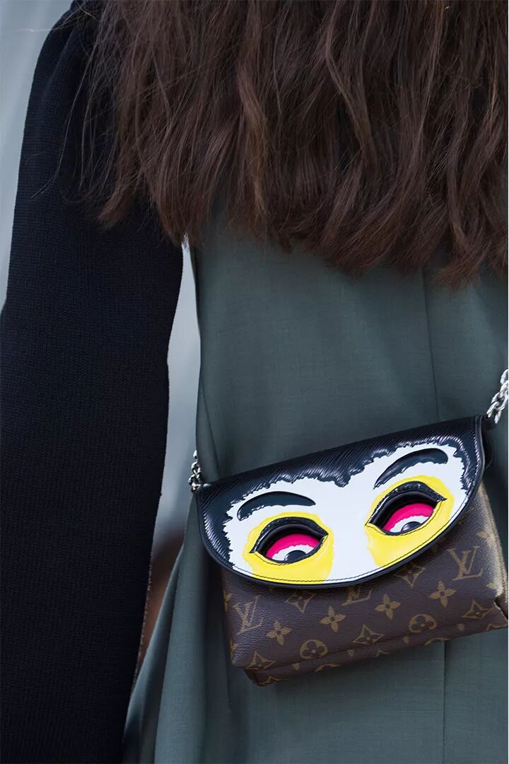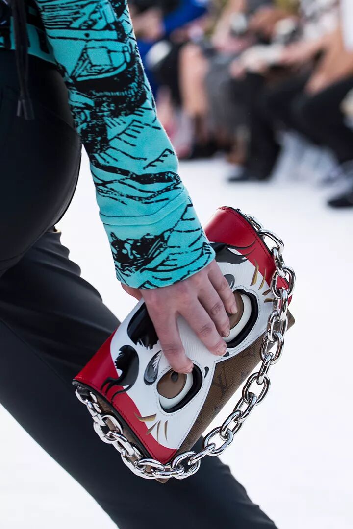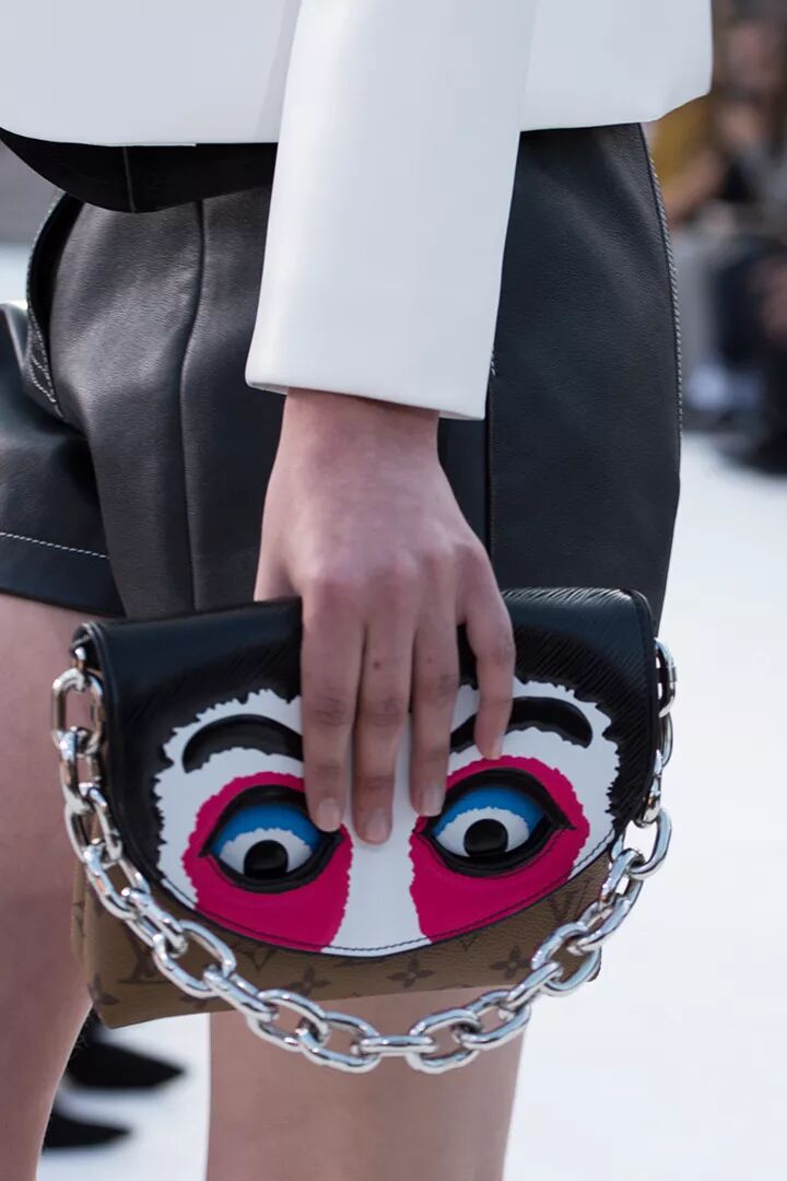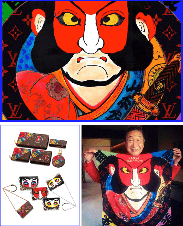再者,从他前两年和LV轰动一时的合作系列中,也能看出一点端倪来。2017年,迷恋日本文化的LV现任创意总监Nicolas Ghesquière,于日本举行了Louis Vuitton的2018早春系列。透过服装和妆发致敬东瀛传统文化之余,更和他的灵感缪斯山本宽斋来了个携手合作。宽斋设计的歌舞伎和武士纹样不仅应用在服装上,还推出了一系列的合作包款和配饰。