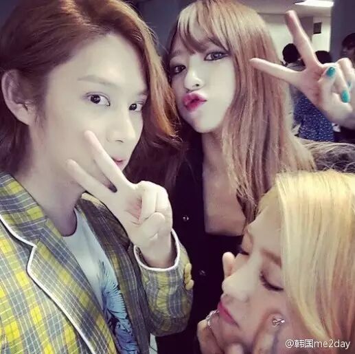 [金希澈·HaNi·宝拉亲密的自拍照"大家一起V~"]