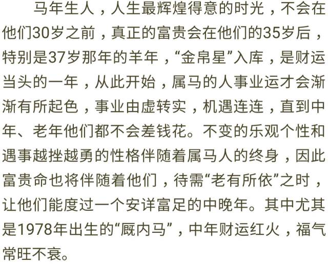 猴年生人,灵巧机敏,事业生意创意极多,赚钱门路条条通,所以不用等到他们年纪大,他们就能比同龄人赚到更多的钱。但是不可否认,属猴的人得等到相对成熟一些的年纪才能学会如何珍惜金钱,年轻时的他们会赚钱,更会花钱,有时候钱在他们手中还没焐热就被花掉了,所以当学会了开源节流,属猴的人就会越老越不缺钱花,社交圈里也处处是偏财。特别是出生于1980年的“食果猴”他们的脑子永远不会生锈,这就会使他们整个后半生都不缺钱花。