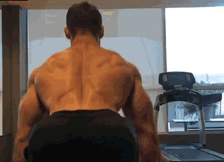 动作依靠时候挺胸,收紧肩胛骨的力量来带动哑铃,收到不能收为止