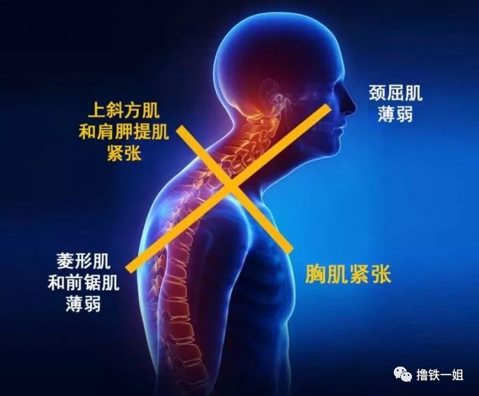 我们长期伏案工作学习,会带动着胸肌的收缩,不信仙女们可以按一按自己副乳那个部位,是不是感觉很痛。胸肌紧张,导致对侧的下部菱形肌和前锯肌薄弱,同样松弛无力,就会让你越来越驼背圆肩。