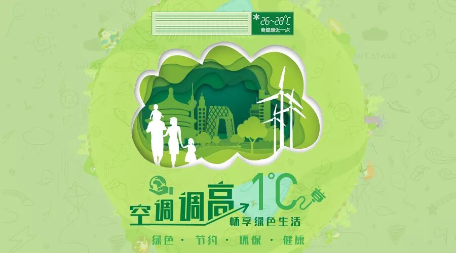 低碳环保,请您把空调调高一度。我国电力主要来源于火力发电,燃煤排放的碳粉尘、二氧化碳、二氧化硫等污染物会造成大气污染。空调温度每提高一度,即可减少相应污染物排放,您就在不经意间为环保事业做了贡献。