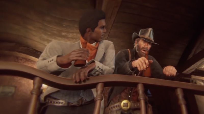 与蓝尼喝酒的剧情是最令人忍俊不禁的桥段,单凭这点我们就得把蓝尼排高点。蓝尼有不少极富深度的台词,他与亚瑟谈论过白人的优越感,教过尚恩阅读,本身也是一个待人热情的小伙子。在抢劫圣丹尼斯银行的任务中,蓝尼的突然身亡令很多玩家倍觉伤感。在本就残忍的西部世界里,蓝尼的身亡更是无比残酷。