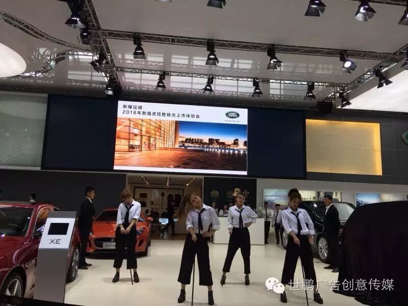 J:啊,过奖了,是这样的,我们世鹏广告传媒有限公司在本次车展服务了包括玛莎拉蒂、捷豹、路虎、凯迪拉克、依维柯等多个豪车名贵车品牌,为各品牌提供了包括