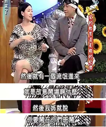 作为“打手”,小S会经常指使“跟班”阿雅去买早餐,最过份的一次,姐妹俩一起怂恿阿雅跳楼,结果阿雅摔得满身是伤回来后,两姐妹却趴在桌上装睡。