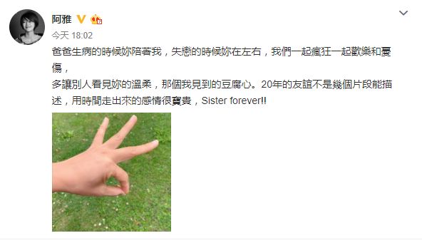 阿雅马上答应,两人聊了三小时停不下来,阿雅于是认定小S是她的好姐妹。