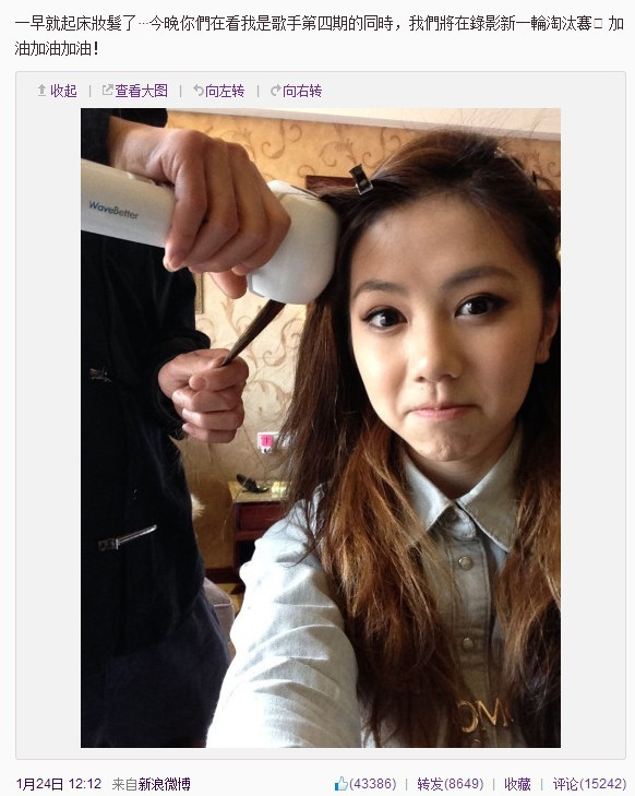邓紫棋同款:邓紫棋在参加《我是歌手》期间,就晒出这张用自动卷发棒做造型的照片,无数网友留言这榔头一样的货是啥?