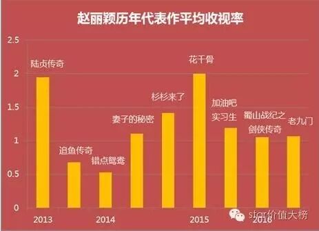 2013年《陆贞传奇》开始,赵丽颖每年都保持着1-2部平均收视过1的高收视作品播出,并且都在剧中担任女一号。这里每部戏无论是剧集水准,还是播出效果、造成的影响,都堪称一流,拥有大批簇拥,而国内能够做到每年都有高收视作品持续播出的演员屈指可数。