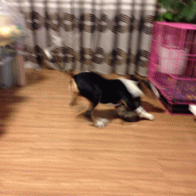第一种是一种名为“轮圈”的强迫症,即沉迷于追逐尾巴而不能自拔,常见于6个月以后的牛头梗。发作时可能持续几小时不停,即使拿食物或玩具引诱,他也决不分心。有些患此症的牛头梗可以通过药物治疗,有的则无药可救。但有时牛头梗由于无聊、 紧张或兴奋也可能有此举动,不过通常转几圈后就会停下来,因而如果偶见狗追尾巴不必过于紧张,这种症状可通过专家指导下的调教而缓解。
