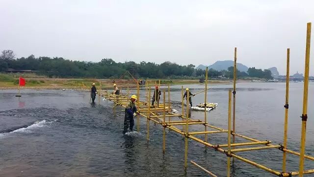 前段时间,正赶上特大寒潮侵袭桂林,市区一度出现3℃的低温,搭建舞台的师傅们说确实挺冷的,但心里火热,干劲十足,因为桂林能够成为央视春晚分会场,他们能够亲手搭建水上舞台,觉得特别骄傲,他们的家人也为他们感到自豪!