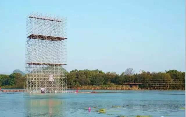 目前,2500平方米的舞台和1600平方米的演员通道水下部分已建好。另外,分会场观众席将容纳2000人,也是临水而建。