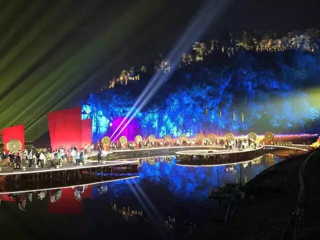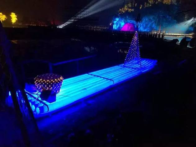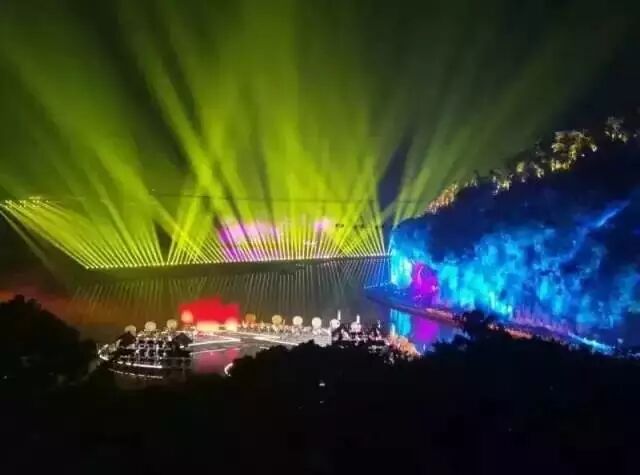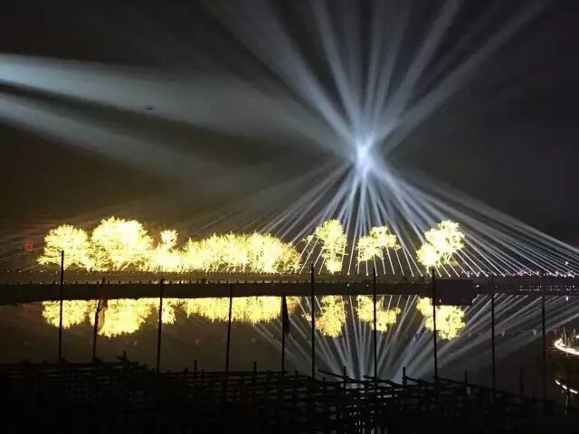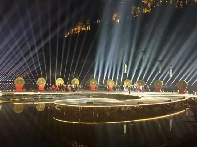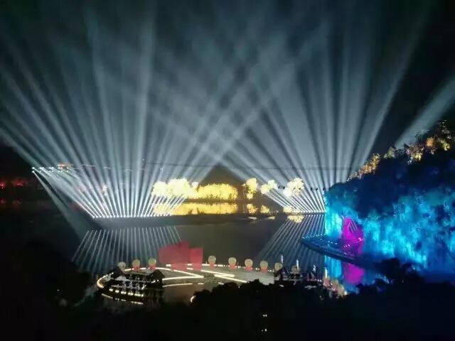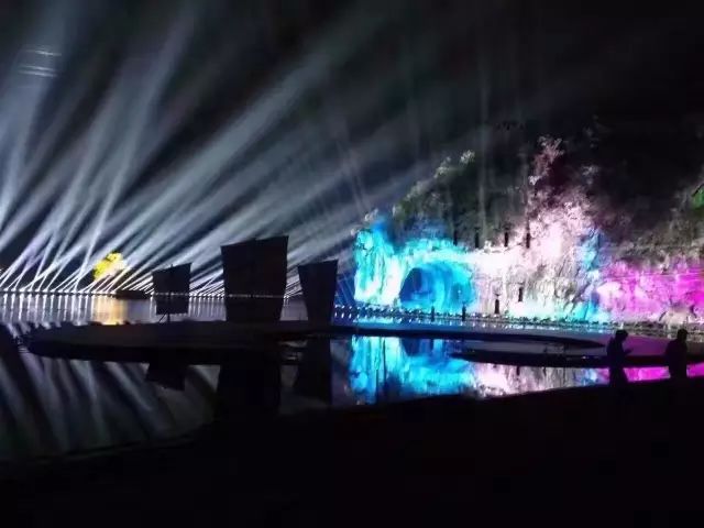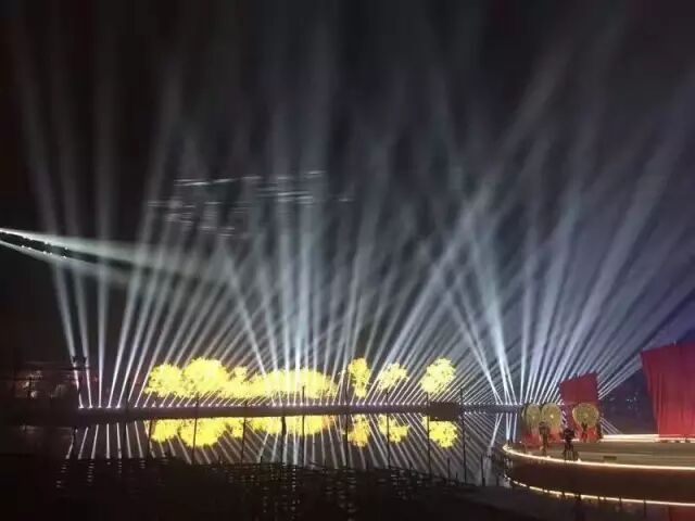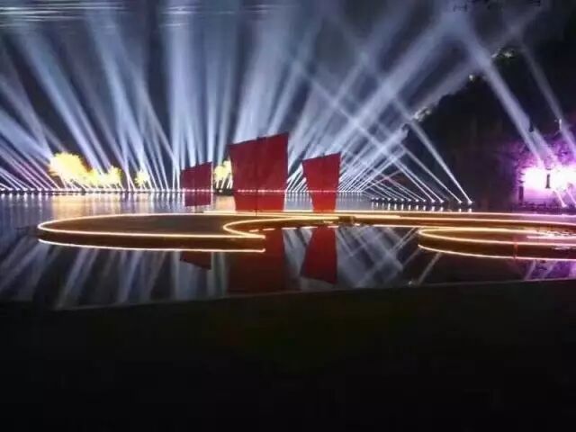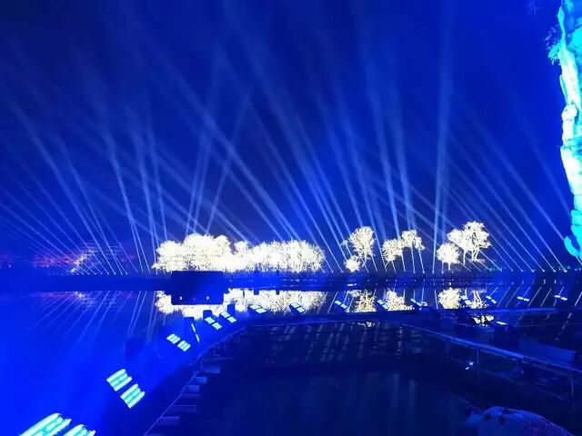 舞台设计新颖,灯光呼应得美轮美奂!舞台绝大多数都是在水上,其中演员的走道铺设达到了400米。