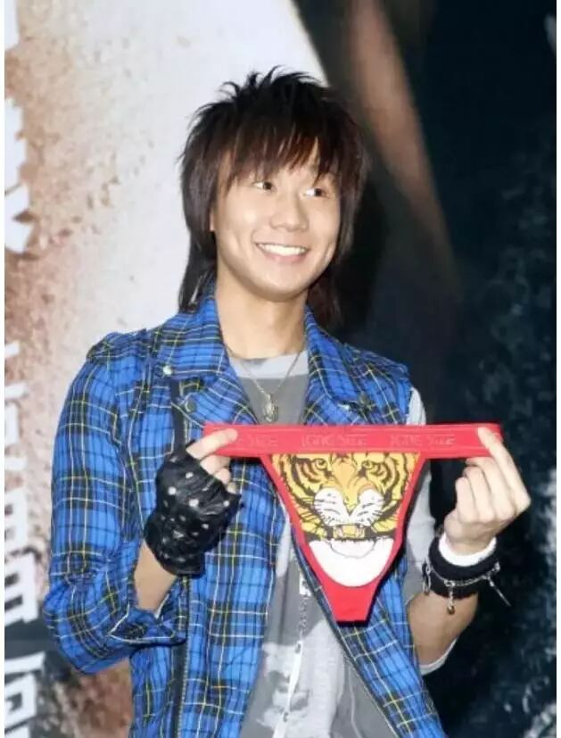 早年在宣传新曲活动时,有粉丝送过他一条虎头丁字裤!哈哈哈哈哈,看JJ拿着丁字裤的表情,一脸尴尬而不是礼貌的微笑!