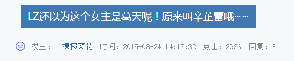 辛芷蕾之前是没什么营销的,还是小透明一个,有人发帖以为她是葛天……
