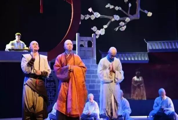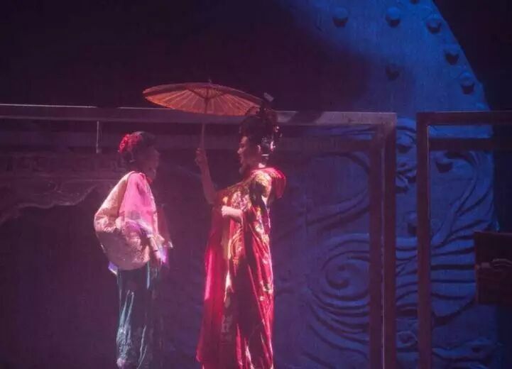 该剧在舞美上尊重传统,一扫舞台奢华风,“一桌两椅”式的设计表达了简约美感,舞台背景左上方的那个月亮,最开始是一轮残月,随着剧情的发展,当最后张生和崔莺莺在桥上合唱时,残月变成了满月,很有一种中国画的写意风格。通过它的变化处理,可以揭示和烘托角色的情感,营造和渲染舞台气氛,给观众带来了一道道视觉的大餐。通过灯光的营造,一定是一个充满浪漫色彩,诗意、唯美,让人一看就想恋爱的地方。