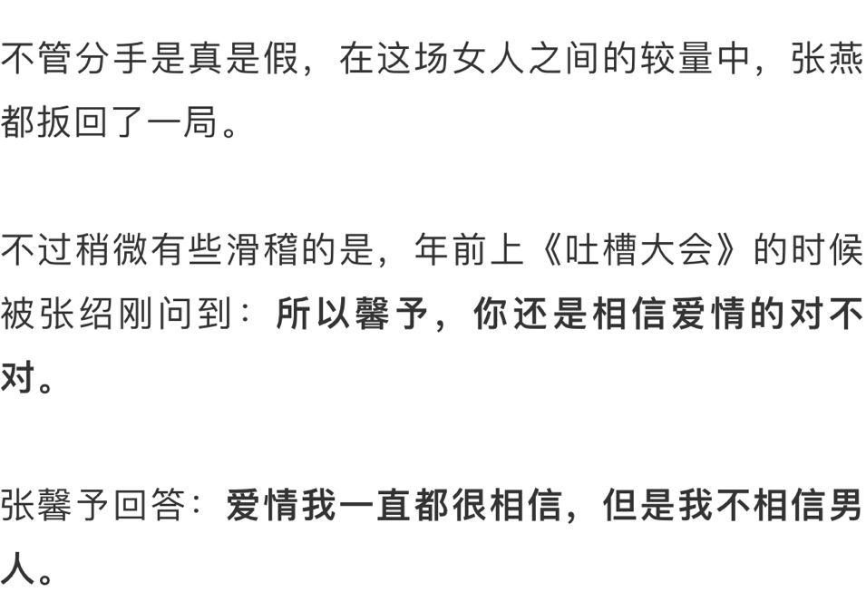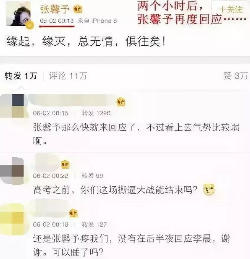 这篇微博发出来之后,张馨予并没有反驳,而只是回了一句:“缘起缘灭,总无情,俱往矣”。