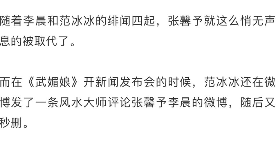 种种迹象表明,是范冰冰三了李晨,或者说李晨劈腿了张馨予。