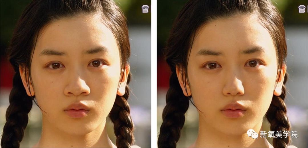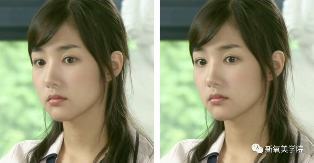 亚洲女性的五官一般都清新秀美,所以如果鼻梁做的太过高挺太醒目,就会有男性化的倾向,也会弱化亚洲五官的秀美,比如朴敏英的鼻子,氧叔其实觉得有点太高挺了,右边是给朴敏英放低了鼻子,其他五官就有随之变清秀的感觉。