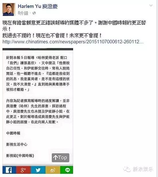 而庾澄庆也在脸书和微博上发文说:“我过去不提的!现在也不会提!未来更不会提!”