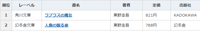 日本每年都会做一个文库销量排行榜,统计前一年日本出版书籍的销售量进项排名。