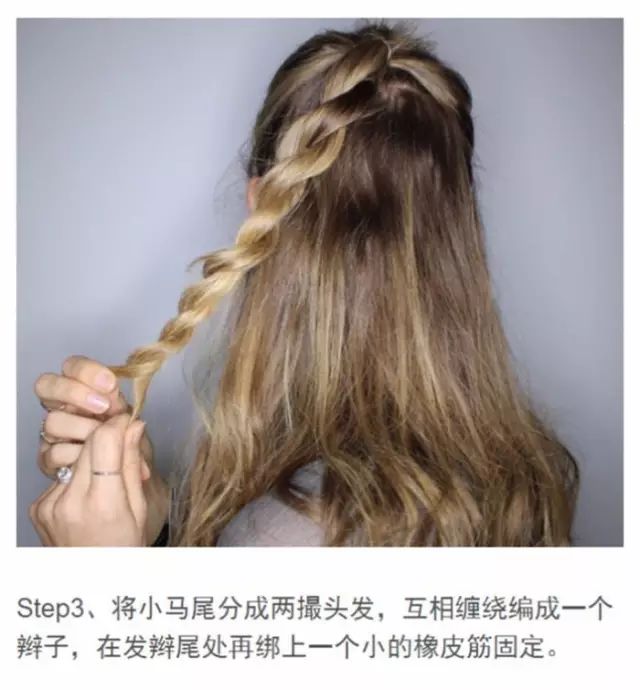 脑补养眼花朵,花瓣儿都是自然微微打开的对吗?因此,在打造花瓣发包时,尽量手下留情,不要将它扎得过紧、过死板。轻轻拧转、缠绕发束营造出略抽象、灵动的花瓣形状,足够啦!