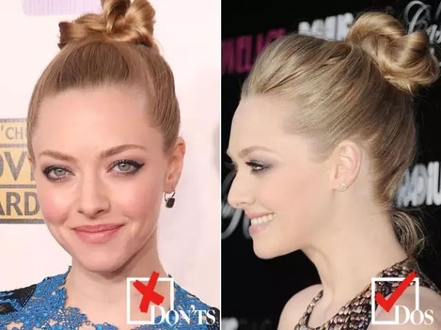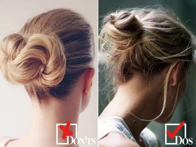 头发浓密的姑娘,最易让丸子头显夯实、厚重,再配上线条光溜儿的外轮廓,只呆板不萌嫩!换以弯曲、交叠的条条发束缠成发包吧,不仅能弱化丸子的整体坨状,还能让发型倍显精致,一举两得!