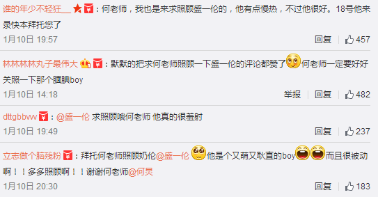 最近据悉盛一伦等人17号要去录快乐大本营!何老师微博底下已被攻陷!哈哈哈,后宫们干得好!