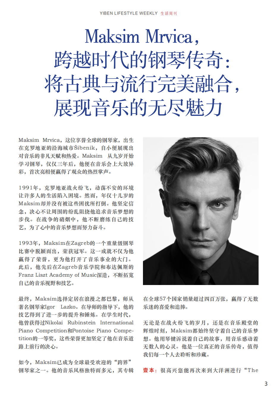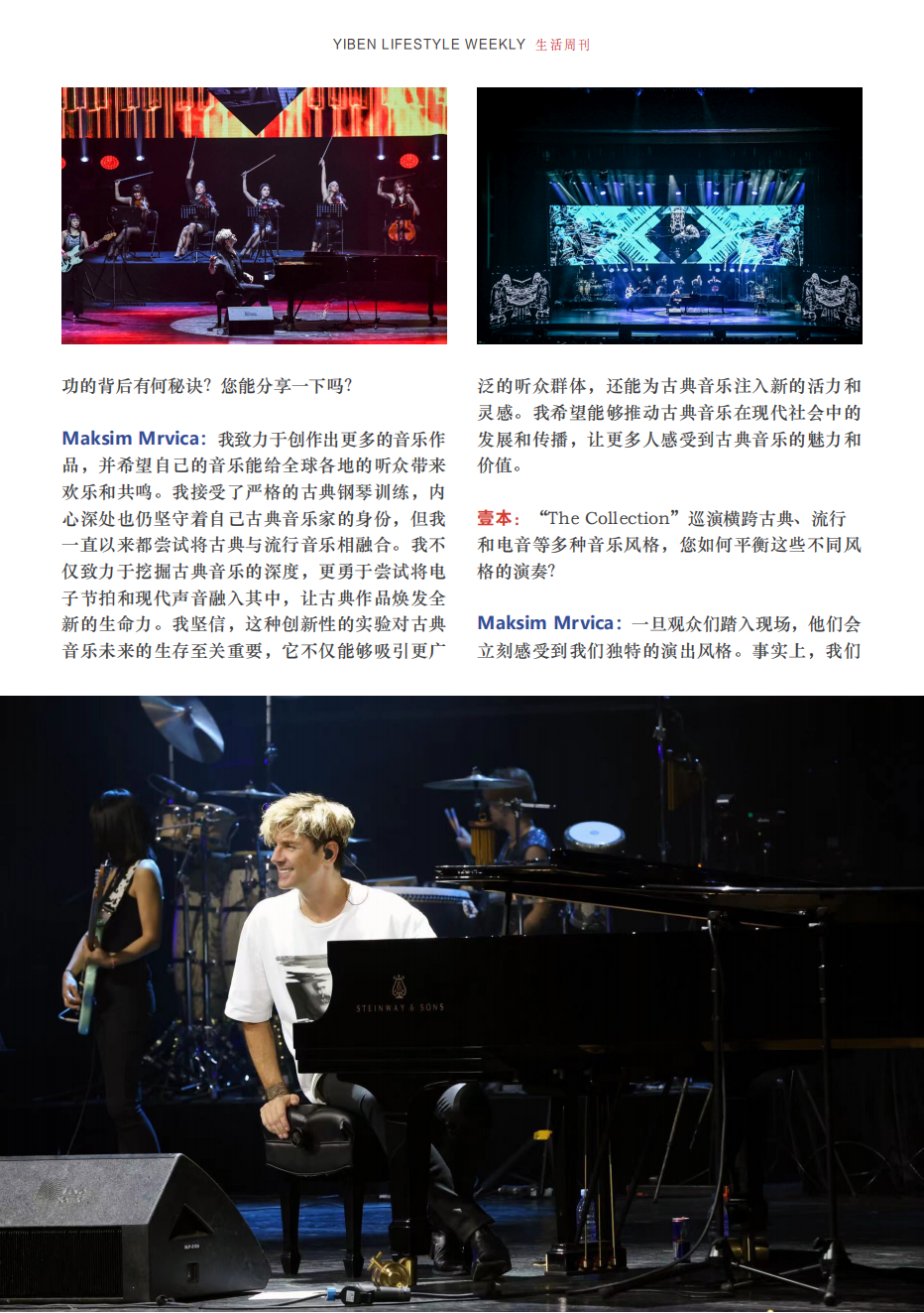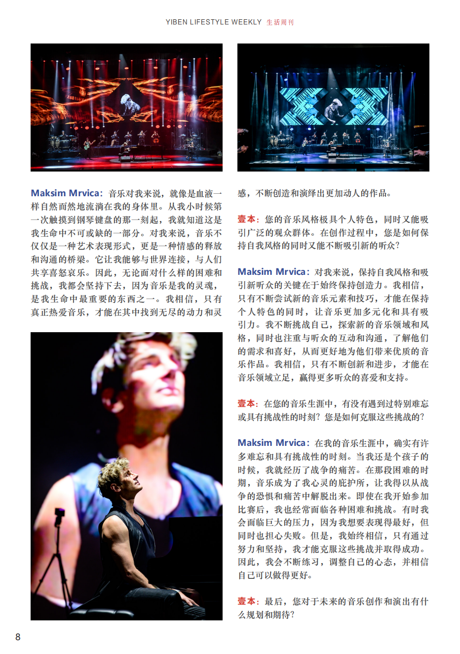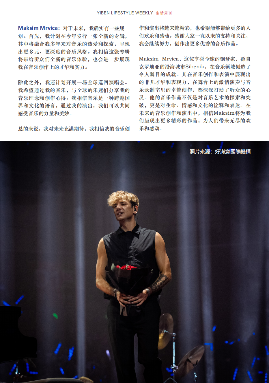 Maksim Mrvica :对于未来,我确实有一些规划。首先,我计划在今年发行一张全新的专辑,其中将融合我多年来对音乐的热爱和探索,呈现出更多元、更深度的音乐风格。我相信这张专辑将带给听众们全新的音乐体验,也会进一步展现我在音乐创作上的才华和实力。