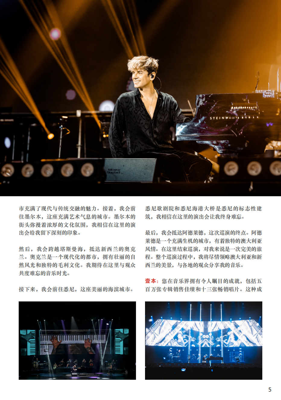 Maksim Mrvica :我挑选的曲目都是我个人非常喜欢的。每一首歌曲,无论是流行曲目还是电影配乐,都承载着独特的情感和故事。对我而言,每一次的演奏都是一次全新的探索,我热衷于挖掘每首歌曲背后更深层次的情感,以及尝试不同的演奏方式,为观众带来全新的听觉体验。