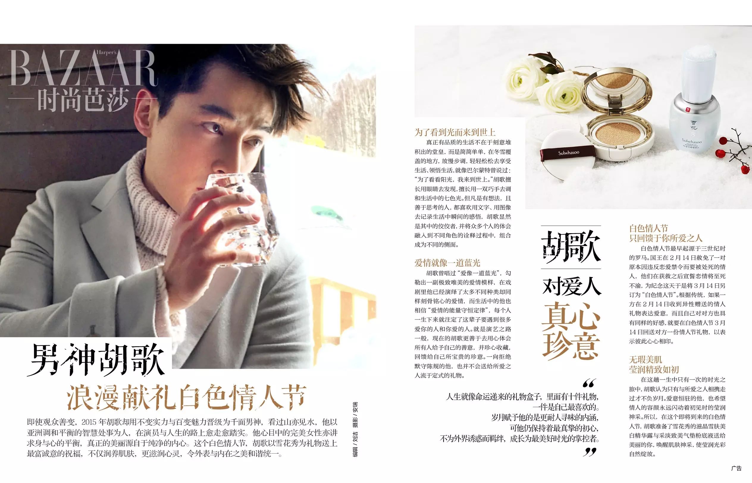 在胡歌看来,真正完美的爱情是身心的契合,正如雪花秀秉承的调和之美护肤理念,韩方药理及配方不仅可以修护肌肤表层的损伤,更着重于调理肌肤内在的平衡。把雪花秀送给未来的她,润养肌肤,也滋润心灵,让她闪动着初见时的莹润神采。