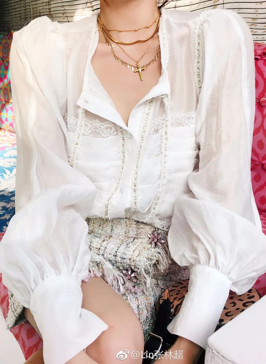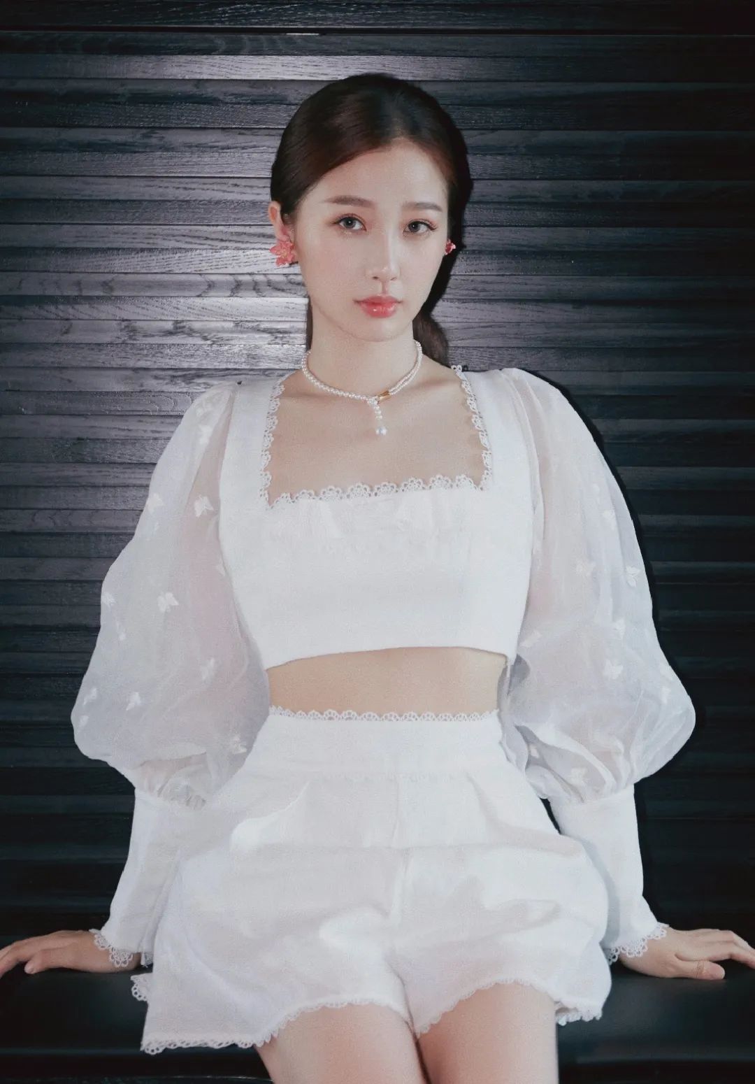 小仙女的称号不是白叫的。郑爽太适合这类干净清爽飘飘然的单品了,仿佛有层层空气环绕,集甜美仙气于一身~