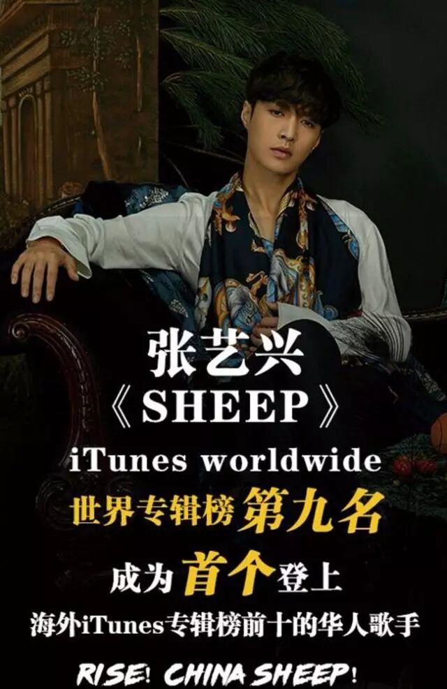 张艺兴的音乐成绩有目共睹,他的专辑先行曲《I NEED U》一路杀入全球16个国家及地区上榜,并拿下美国、加拿大、葡萄牙、马来西亚、菲律宾、新加坡、中国香港、中国台湾、泰国、土耳其等全球11个国家和地区的MV总榜以及POP榜的冠军,并一举拿下美国MV总榜及POP榜双料冠军。他的第二张专辑《SHEEP》国内上线后1分钟销售额破百万,上线后仅2天就登上iTunes世界专辑榜(worldwide)第9名,刷新华语专辑及华语歌手在世界专辑榜最高排名。