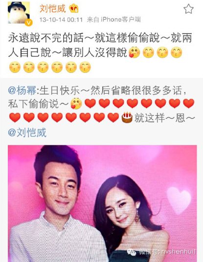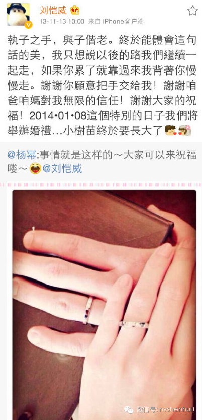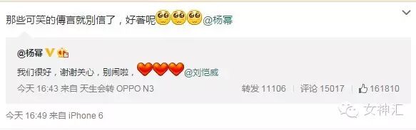 下午杨幂和刘恺威发微博回应: