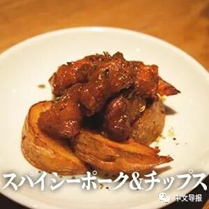 スパイシーポーク&チップス:600円(特性の甘辛ダレで絡めた豚肩ロースとチップス)
