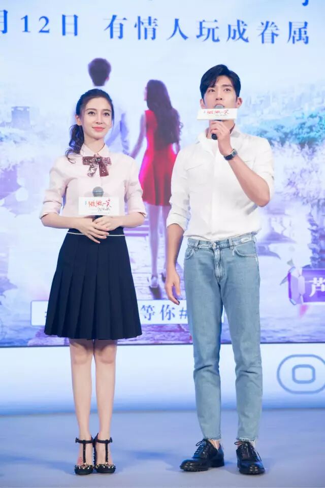 7月10日,Angelababy出席了在北京举行的奇幻爱情电影《微微一笑很倾城》的一“键”钟情发布会。发布会上,两位主演还原“微笑夫妇”贝微微和肖奈的宠爱戏码,互送情话霸道互撩,现场欢笑不断,二人之间的感情可见一斑。当天发布会为了还原电影中的青春女神“贝微微”的形象,baby不仅扎起了马尾,更是身着浅粉色衬衫配黑色短裙,一身扮相学生气十足,少女力无边。