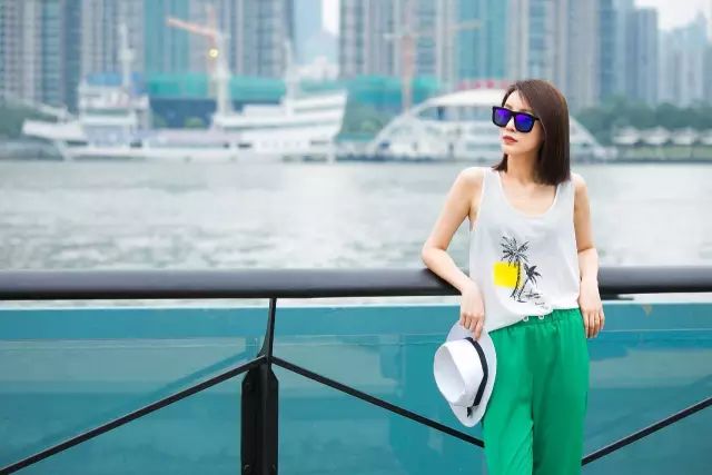 穿一件椰树图案的背心,清爽随意中带着些许不羁。搭一件亮绿色长裤和一顶圆形礼帽,假期模式开启。
